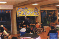 前半は屋台を行い、くじ引きで1等を当てて喜んでいる人、3等で残念がっている人もいましたが、他の屋台でも楽しんで頂けたと思います。後半は職員デュオによる演奏を行い盛り上り、皆で音楽に合わせて手拍子をし、楽しい時間を過ごすことができました。