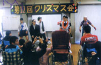 午後はホーム対抗でゲーム大会を行いました。特に白熱したのは、スクリーンに写し出したWiiのボクシングゲームです。各試合とも大歓声があがっていました。そして最後は毎年恒例の新人ショータイム。